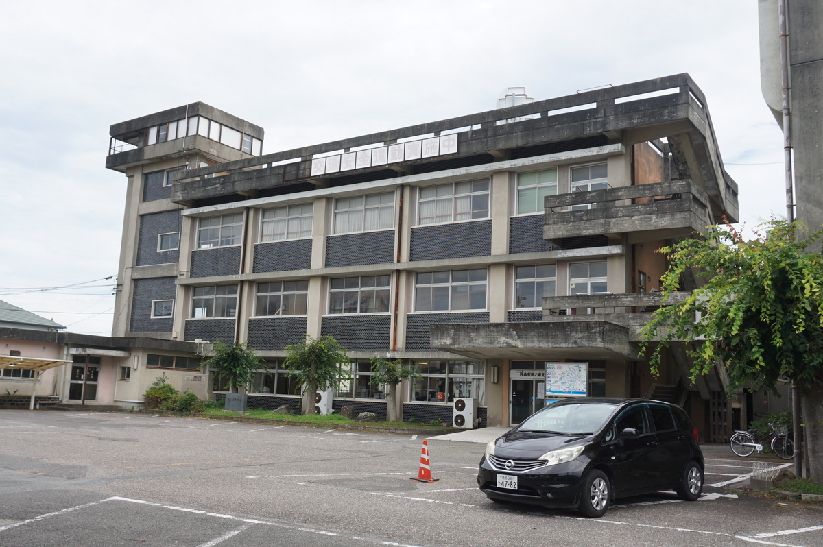 駅周辺を散策。安芸郡海田町役場は昭和53年に建てられたもので、今年9月19日に新庁舎に移転して役目を終える予定です。
