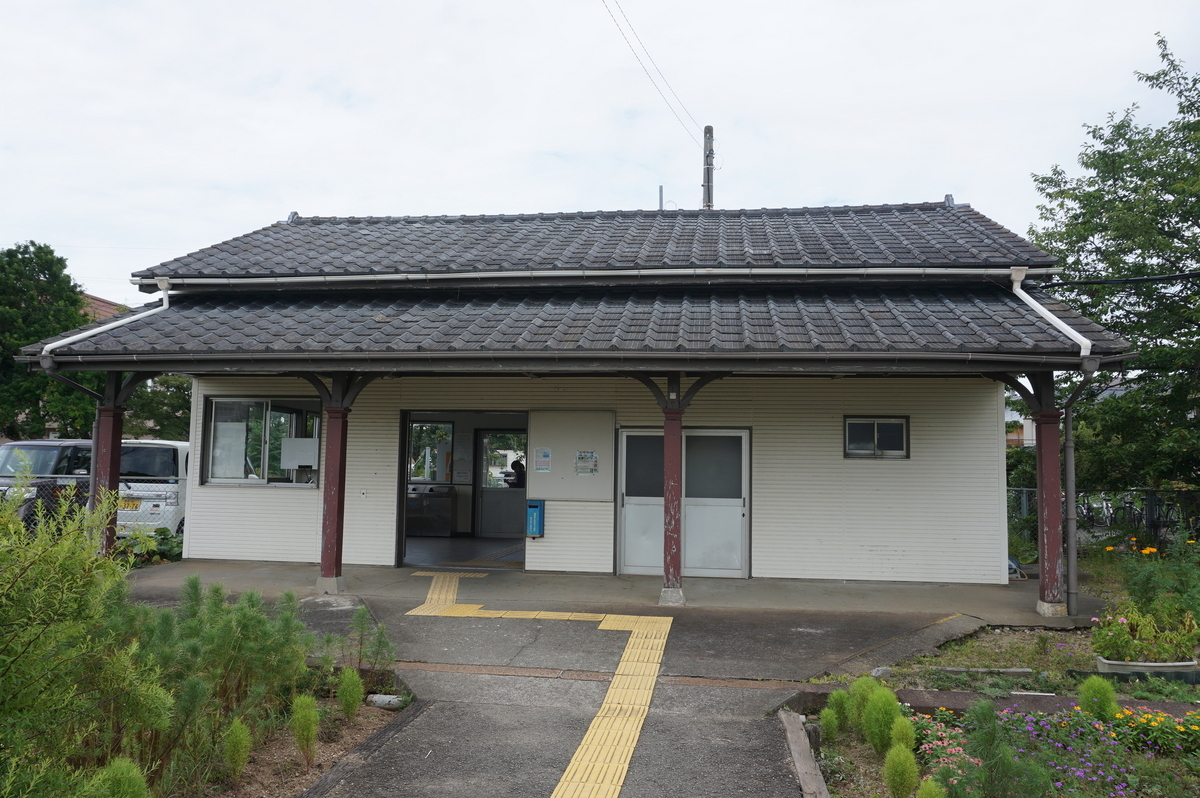 村山8:48発普通山形行き1430M(クハ700-5507)と山形9:34発普通米沢行き428M(クハ718-5002)を乗り継いで置賜(おいたま)へ。その名の通り置賜盆地の田園地帯にある駅で、昭和58年改築の駅舎は山形県内標準仕様の簡易駅舎。使われなくなったホームと途中で塞がれた跨線橋も残っています。大正6年12月20日開業時の所在地は東置賜郡上郷村で、明治の町村制までは東置賜郡浅川村でした。上郷村は昭和33年2月1日に米沢市に編入されています。