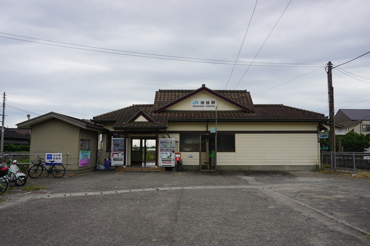 池谷駅の特徴は「ハ」の字に配置された2本のホームで、それに挟まれるように駅舎が置かれています。二つの路線の分岐駅で、ホームがY字に分かれる駅はそれなりにありますが、完全に別れきっているタイプはなかなか珍しいのではないでしょうか。