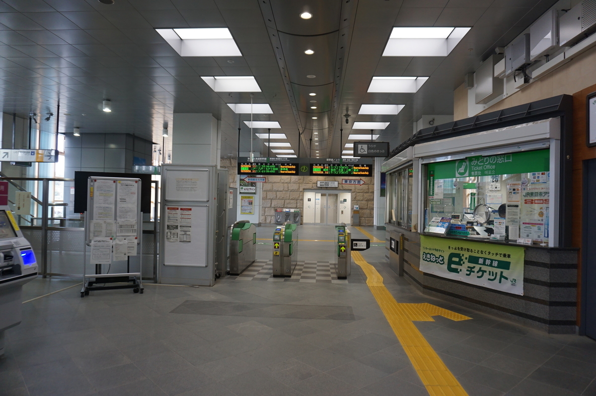 さて、東北新幹線の最重要駅とも言うべき仙台駅は言わずと知れた東北最大の都市・仙台市の玄関口。駅舎は新幹線開業に先がけて昭和52年12月15日より使用開始された6代目で、昭和57年6月23日の新幹線開業を以て完成しました。4階建てで1階(地上)に在来線ホーム、2階に在来線改札、3階に新幹線改札、4階に新幹線ホームがあり、新幹線改札は単独のものと乗換改札が中央と南にそれぞれ2か所、計4ヵ所も設置されています。この日は仙台の快活クラブに宿泊、二日目も引き続き新幹線の駅を巡っていきます。