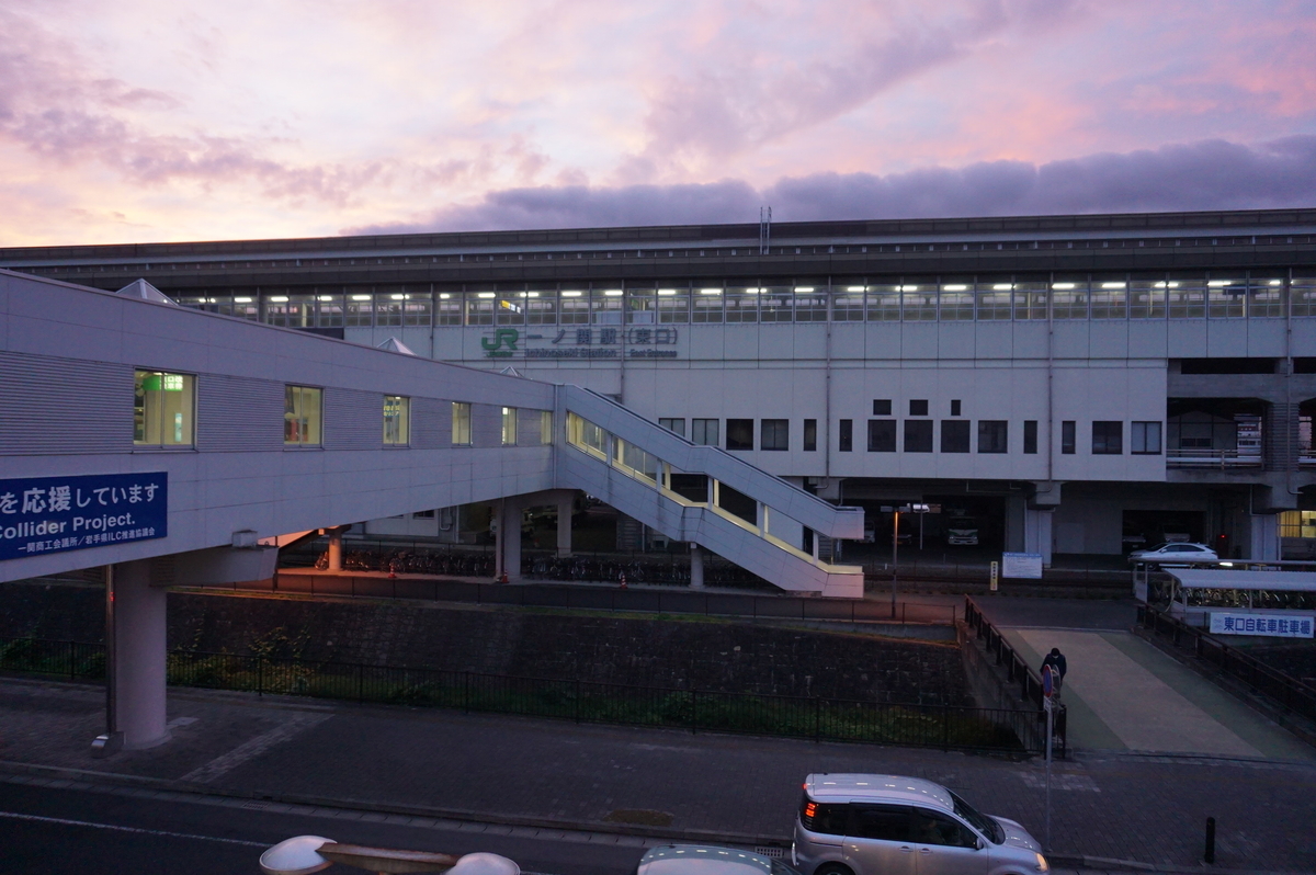 水沢江刺16:38発はやぶさ110号東京行き4110B(E525-43)で一ノ関へ。岩手県南部の中心都市で田村氏一関藩3万石の城下町として栄えた一関市の代表駅です。新幹線側が東口、在来線側が西口で、新幹線ホームから西口へは在来線乗換改札を通って跨線橋を渡っての連絡となります。中心市街が広がる西口駅前とは対照的に東口駅前には工場などがあるだけで、訪問した夕方には寂しげな雰囲気でした。