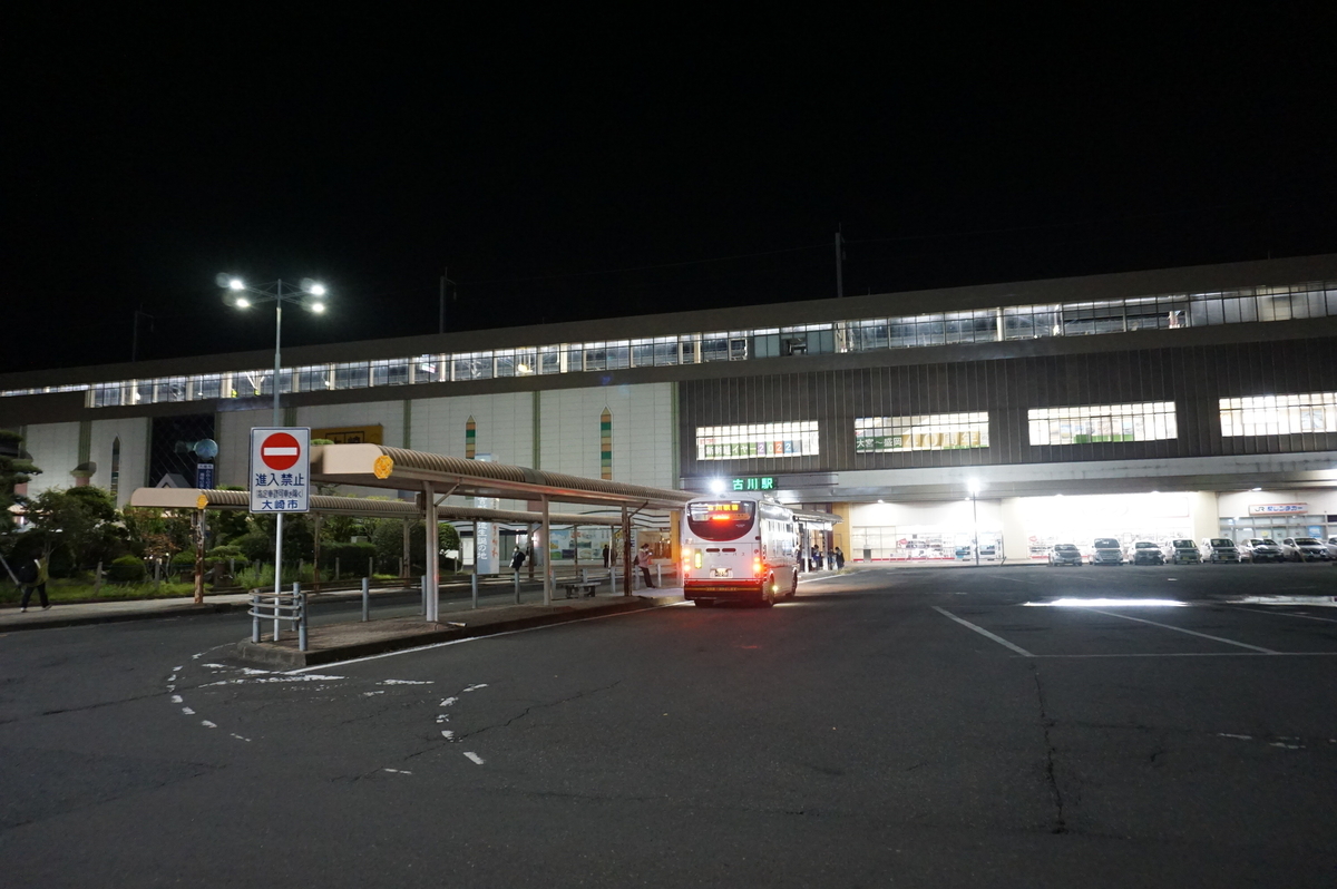くりこま高原18:47発やまびこ68号東京行き68B(E523-31)で古川へ。宮城県北部・大崎地方の中心都市・大崎市の代表駅で、陸羽東線との交差地点に設けられた乗換駅です。陸羽東線の駅は「陸前古川」を名乗っていたものの、新幹線開業を前に交差地点に移転し、市名に合わせて「古川」に改称されました。古川市は平成18年の合併で大崎市となっています。